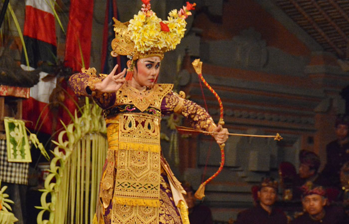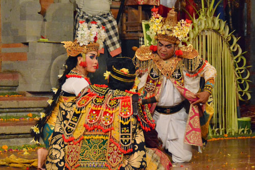 4番目の演目は、レゴン・スマランダナ。愛の神スマラが天界で暴れる怪物をシヴァ神に倒してもらうため、瞑想中のシヴァ神を目覚めさせるのですが、事情を知らないシヴァ神は冥想を邪魔されたため怒ってスマラを焼き殺してしまう…というあらすじです。