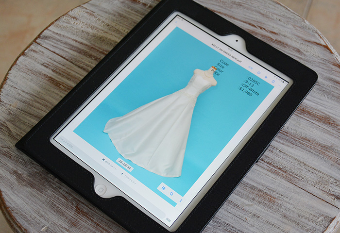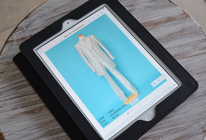 衣装選びはipadで。実際の衣装はずらりとハンガーにかけられています。