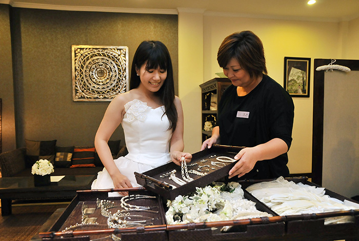 イヤリングにネックレス、ヘッドアクセサリー、ベールなど、みんな可愛くて目移りしてしまいます。迷ってしまったら、日本人スタッフさんに気軽に相談しながら決めるのもいいですね。