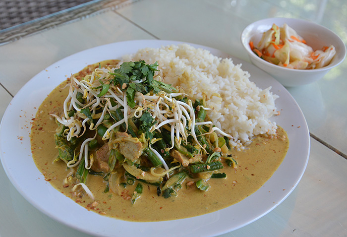 ↓カレー ココ ライス Rp.52,000。野菜たっぷりのココナッツ風味カレーは、辛さも調節してくれます。シャキシャキのもやしとパクチーでさっぱりとした食感?