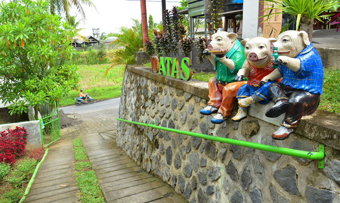 ワルン ディ アタスのワルンはインドネシア語で「食堂」、ディ アタスは「上の」なので、「上にあるワルン」という意味です。なるほど、ワルンはこのスロープを上ったところにあります。