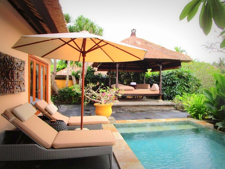 そして実はニュピは曇り雨とまさかのお天気になってしまったのですが、それでもホテル=プールな私はプールへ。。。そんなちょい寒時に極楽の温水プールがあるのです。