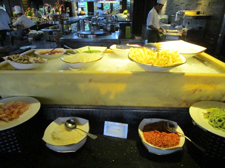 ヌードルコーナー、パスタコーナーではお好きな具やソースでカスタム麺を作ってもらいましょう。