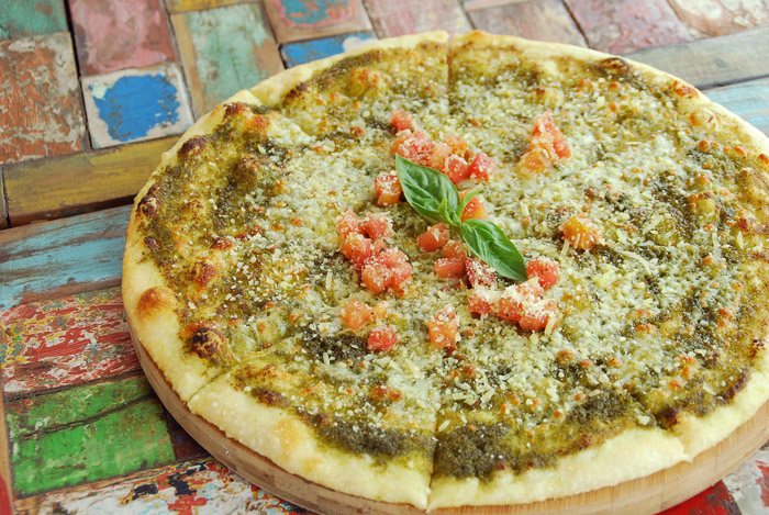 ↓続いてはピザ。ペストソースをたっぷりと使ったピザ バジル バジルRp.52,000。家でもバジルを育てている私には、生唾ものの一品です!バジル、美味しいですよね〜。