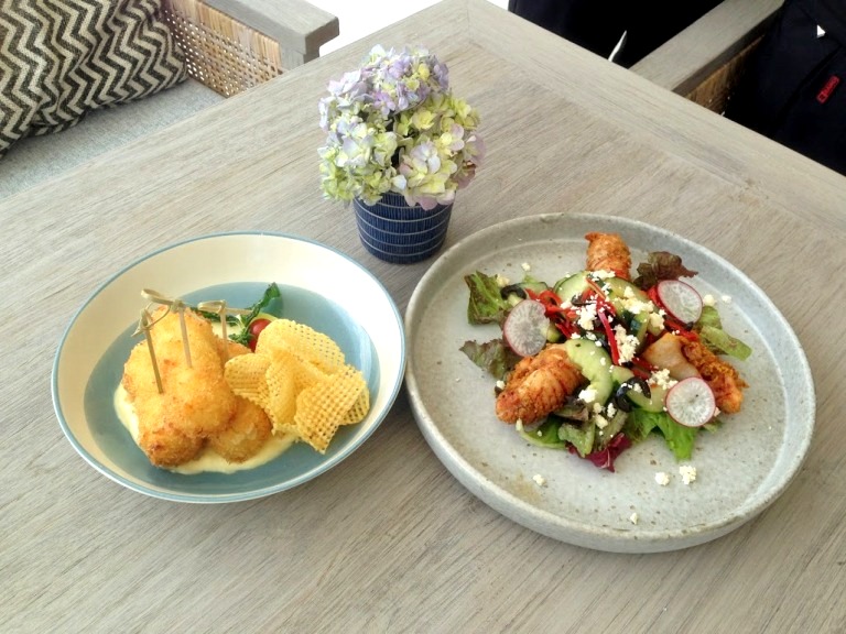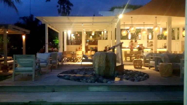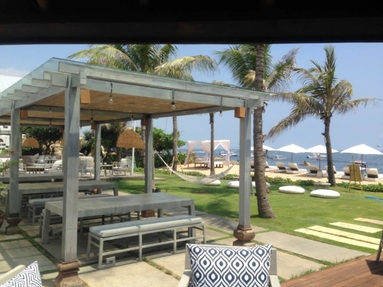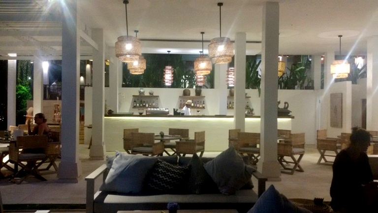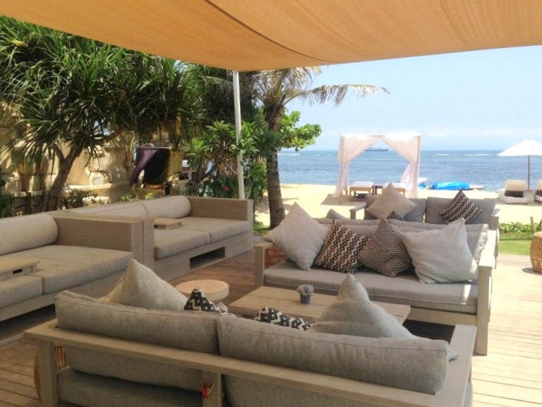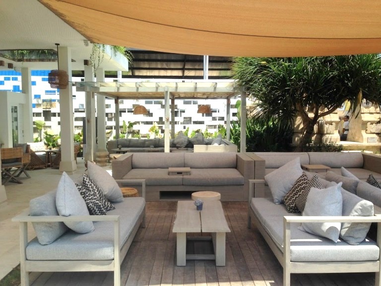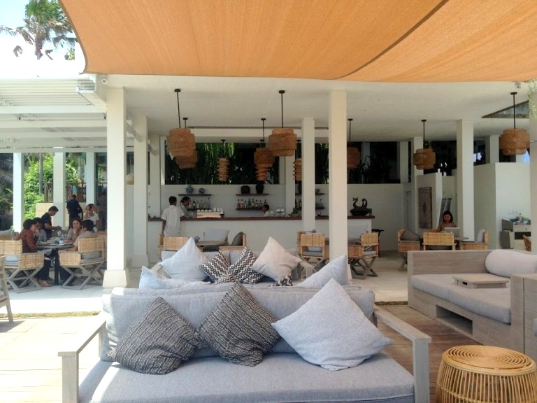 ビーチクラブでゴロゴロするには食事も大切!!奥のバーカウンターも可愛い。