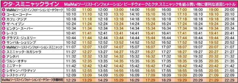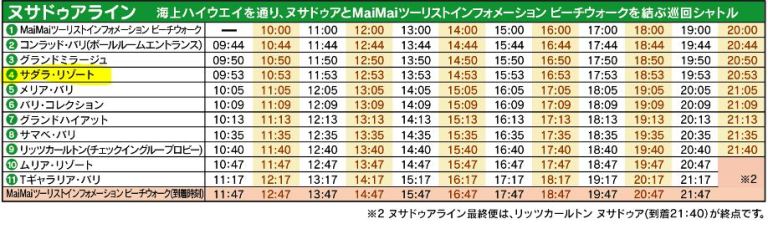 クタ・スミニャック方面から行かれる方は、クタ・スミニャックラインバス停①ビーチウォークでヌサドゥアラインに乗り換えできまーす。(一番下にビーチウォーク到着予定時間が記載されてます。)