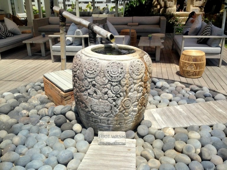何かと思ったら足についた砂を洗ってもらう「Foot Wash 」 桶で水を汲んで足を洗います。