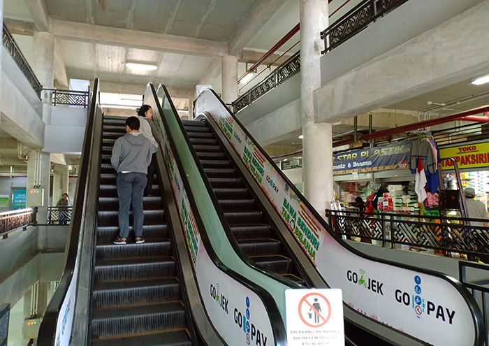 新しくなったパサールにはなんとエスカレーターもエレベーターも設置されていました!