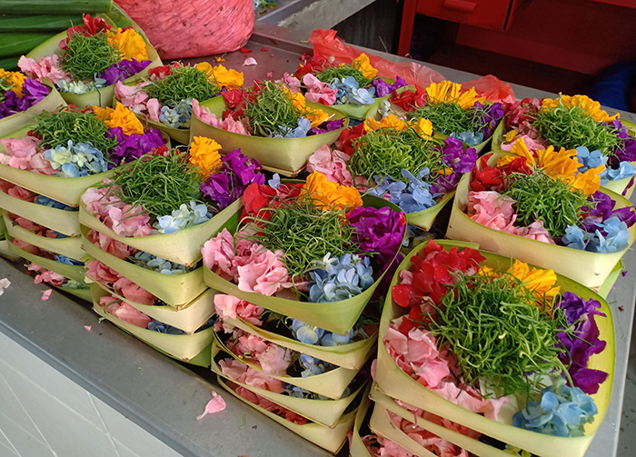 こちらの女性はチャナン(お花のお供え物)を作って売っています。