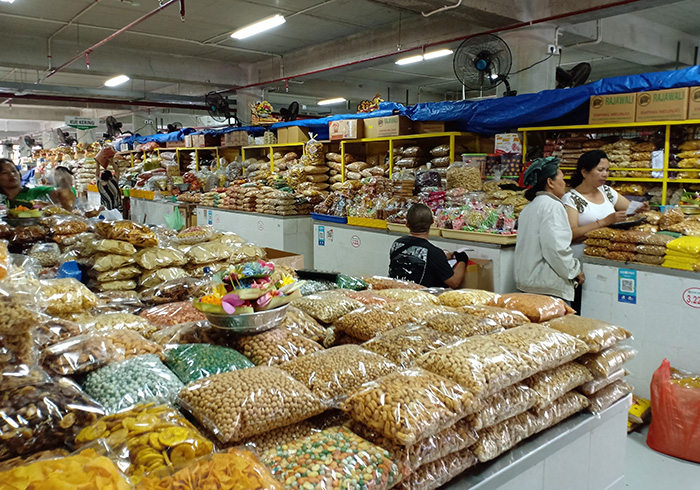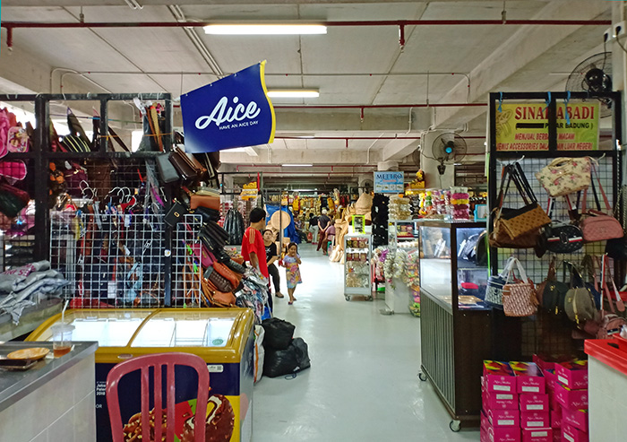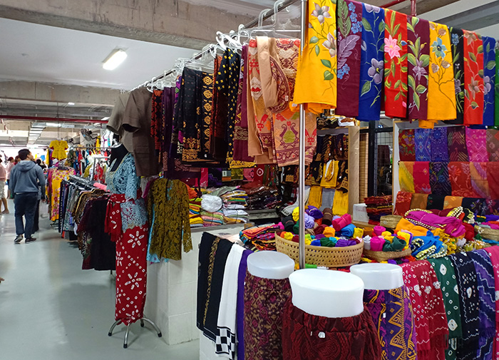 こちらは洋服や民族衣装、それにナシブンクス(テイクアウト用のご飯)を買ったり食べたりするコーナーもあります。