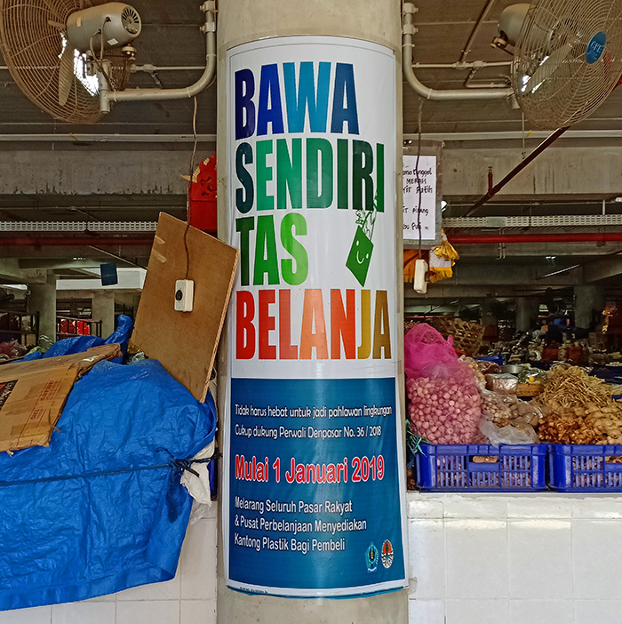 2019年から、バリ島ではプラスチックバッグ削減のための活動をしています。パサールだけでなくコンビニなどでもビニール袋をくれませんので、お買い物の際はご自身で用意してくださいね。