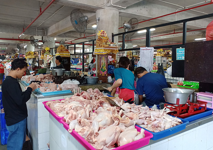 こちらは鶏肉コーナー。スーパーのように部位ごとに売られるのではなく、丸ごと!