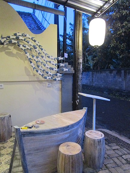 バイパスとタンブリンガン通りの間のJl.Karang Sariにあります。ハイアットの南端を海を右だとすると左に左折(ソウルインボウルを左折)。右側を探してみて下さい。バイパスから入った方が近いです。