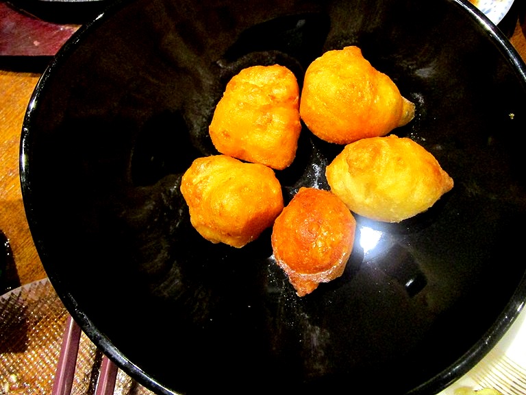 鳥皮ぽんず、もちもちチーズボール、野菜スティック、だし巻き、スパイシーポテト、スモークチキンサンバルマタ、かきフライ、海鮮お好み焼き、貝酒蒸し、かにの・・・なんだっけ…どれも優しい日本の味ですが、特に貝の酒蒸しのおつゆの美味しいこと!次回はお寿司や麺類も試してみよう。