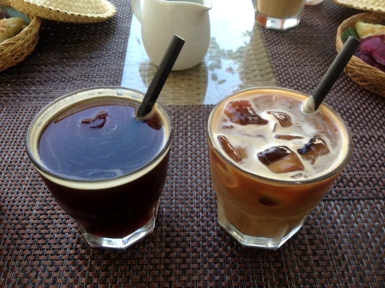 ジンジャーティーの他にコーヒーもオーダーできます。(右:ホテルスタッフお勧めのカフェラテ)