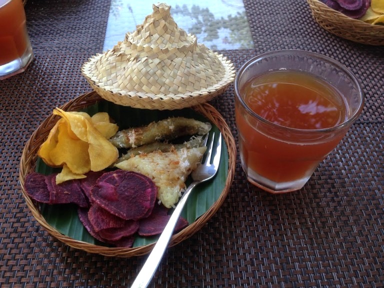 ひと泳ぎの後は…お楽しみアフタヌーンティ(バリのお菓子とジンジャーティ)で喉を潤し…