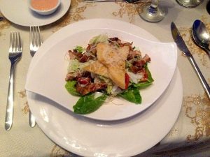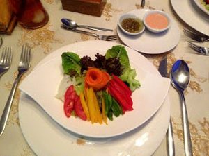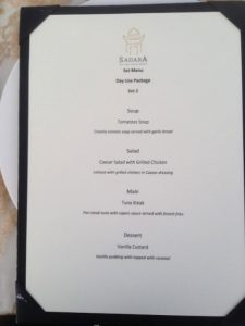 ディナーのメニューは、スタンダードコース・2種類のメニューをご紹介します。ホテルスタッフから「ボリュームがありますので4歳以下のお子様がいらっしゃるご家族は、お子様用にアラカルトメニューをオーダーしなくても大丈夫ですよ」と言ってました。