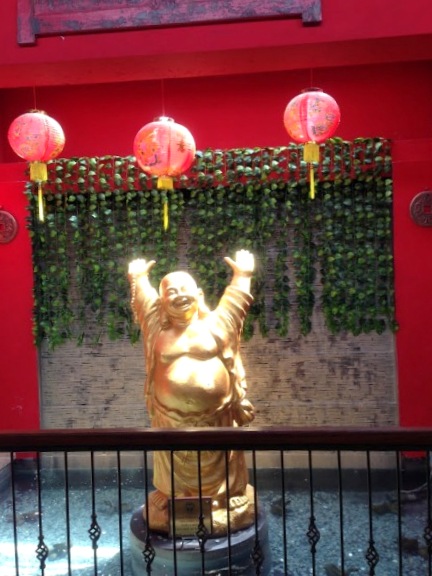 入り口をはいると、これまたドーンと七福神のような金銅像。 取り合えず拝む・・・。