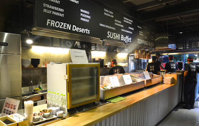 注文は食堂っぽく、自分でトレーをカウンターにおいて、揚げ物などの一品料理をお皿にとったり、飲み物をとったりしていきます。最後にレジでラーメンを注文し、先にお会計を済ませるという仕組み。