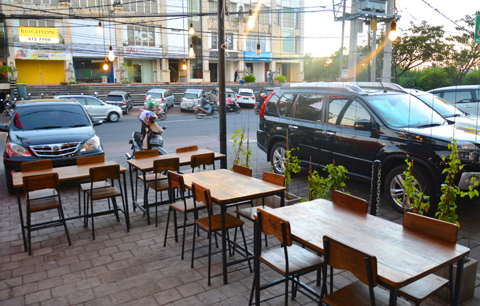 ↓厨房手前にあるテラス席はストリートビュー。ワタシはあんまり知らないのですが、夜はこのデウィスリ通り、かなり賑やかになるそうなので、ストリートウォッチングとかも楽しそうですね♪