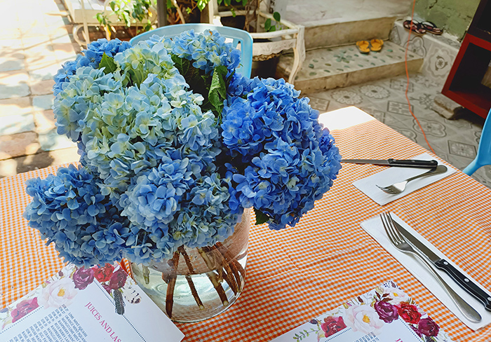 無造作に投げ入れられたテーブルの紫陽花もなんだかいい雰囲気です。