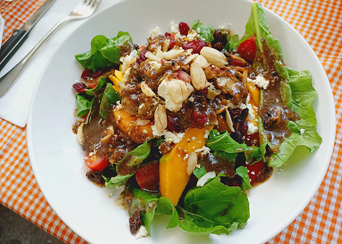 ドレッシングはマンゴーの甘さに負けない、酸味の効いたはっきりとしたテイスト。