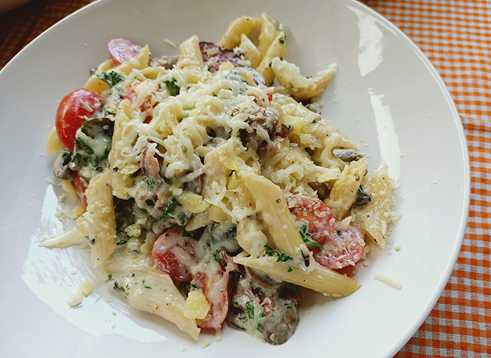 ペンネ マッシュルーム メルテッド チーズ with ビーフベーコン Rp.65,000
