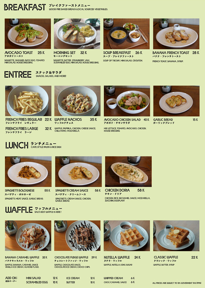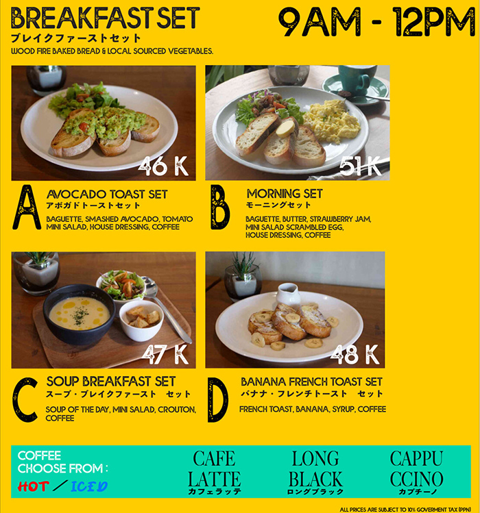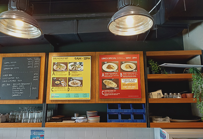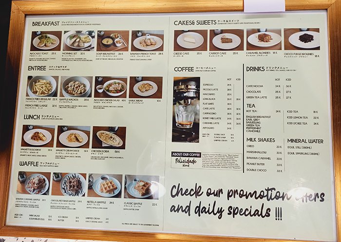 朝食メニューやランチメニュー、ドリンクメニューなどいろいろ。