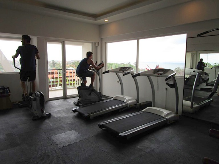そして、朝食会場でもある、メインレストランは屋上なのですがその前に●ジムを見学。海が見えるのでより頑張れそう。
