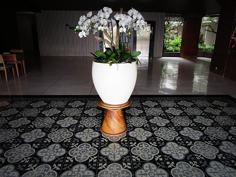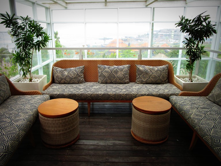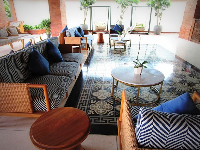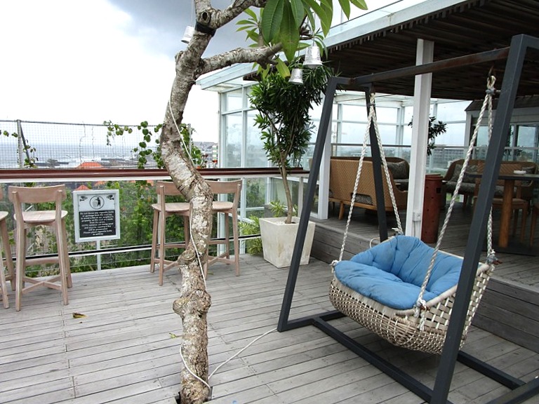 こういう平たくて、見通しがよくて、座り心地の良さそうなソファが並んでいるロビーって好きです。待ち合わせしていても、あれ、、違うところで待ってるかな?なんて探さなくて済むし、正面にレセプションがありスタッフとも常に目が合うし、困ってたら助けてくれそうだし、椅子の数も充分。何より長居したくなりそうな風の吹き抜ける居心地の良い空間。バリ島快適ロビーと呼ばせて頂きます。ブランコもあったりします。
