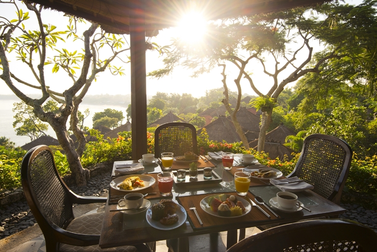 タマンワンティランレストランは、朝食をお出しするレストランでもあります。朝はこんな感じで溢れる光で一杯。