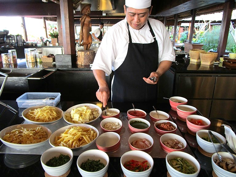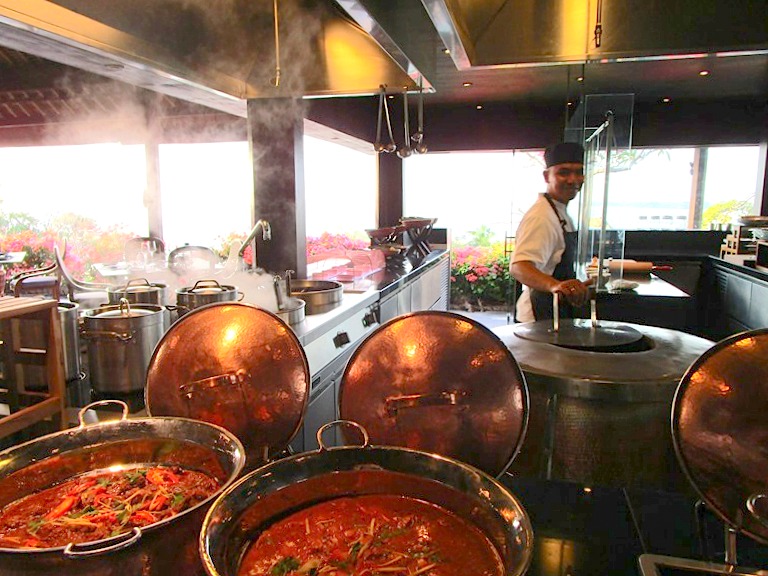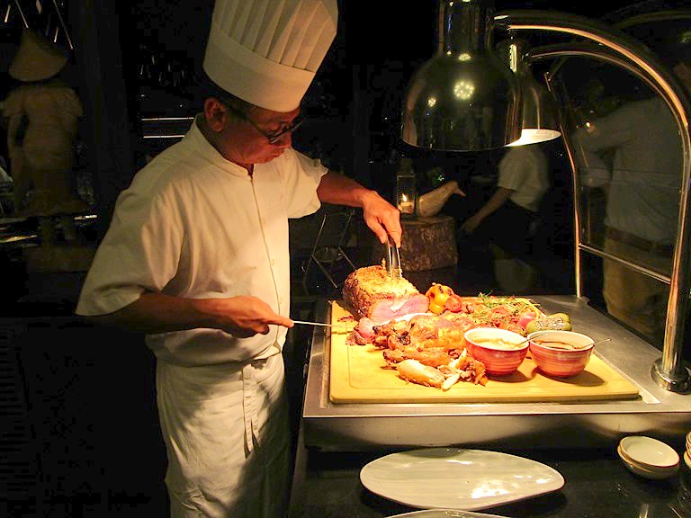このタマンワンティランからは、水色の水平線に穏やかなさざ波が立ち、まるで水彩画を見ているような風景が見えます。でも私が本当に好きなのは、口コミや広告の量なんかにはまどわされず、本業のホテルサービスを磨き上げることが評判につながる、というフォーシーズンの姿勢が好き。うん、確かにいいホテルって宣伝しない。見ているだけでもワクワクするお料理、きつね色に焼かれた野菜、しゃきっとしたサラダ、じっくり焼かれたお肉に時間をかけて完成したカレー…全部が美味しそうで、なおかつ種類豊富な味やソース、お料理の前に書いてあるメニューも親切、全部がさりげなく最高なのはそれが普通のことなのだからですね。テーブルの上にもトイレにもシェフの一言にも小さなやさしさの積み重ねを感じるし、そういう思いがこのホテルの隅から隅までを品で溢れさせ、どこにいても心を穏やかにしてくれる…だから楽しいディナーだった、と記憶に残るのだなぁ。。
