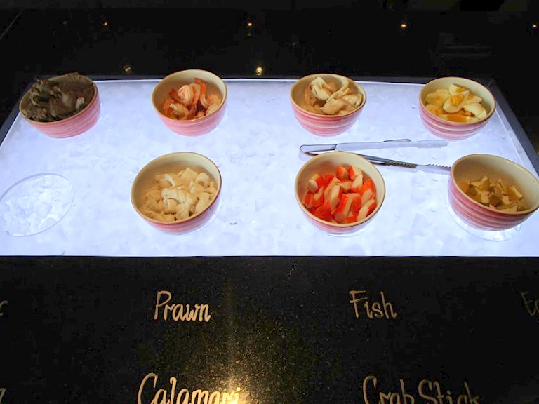 一番の特徴は、各コーナーに、たくさんの種類のソースがあり、何通りにも味わうことが出来る。そしてビュッフェではあるけれどもほとんどがお好みの具、味で調理してくれるスタイル!。