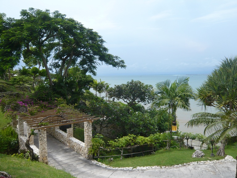ロビーから正面の海を見つつこの階段を下りて行くとタマンワンティランがあります。