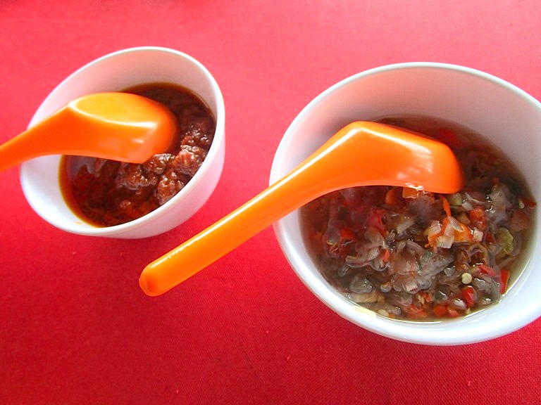 左チリソース、右サンバルマタ、サンバルとごはんでもいけちゃう美味さ★