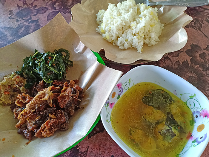 途中で通るサンゲエ村に美味しいレレが食べられるワルンがあるとおしえてもらい、ランチがてら行ってみました。
