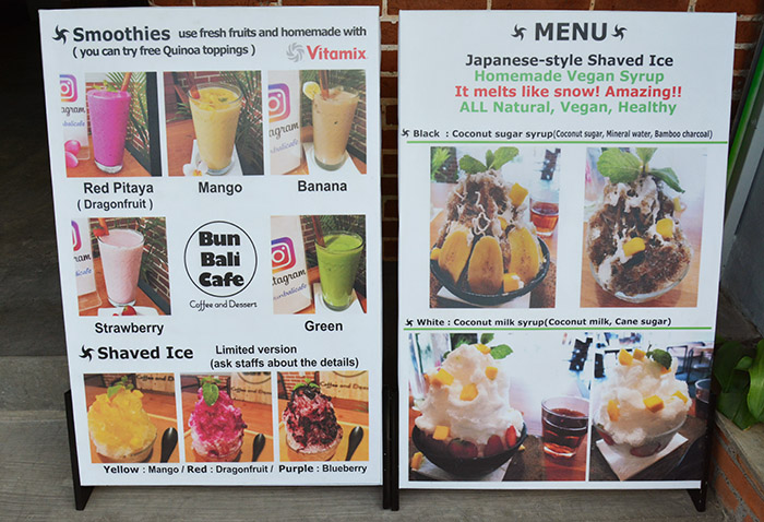 ↓お店の前にはブン バリ カフェのメインメニューであるシャーベットアイスとスムージーメニューのボードがで〜んと立っています!