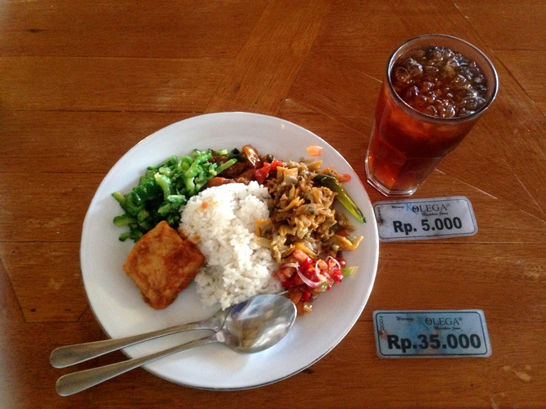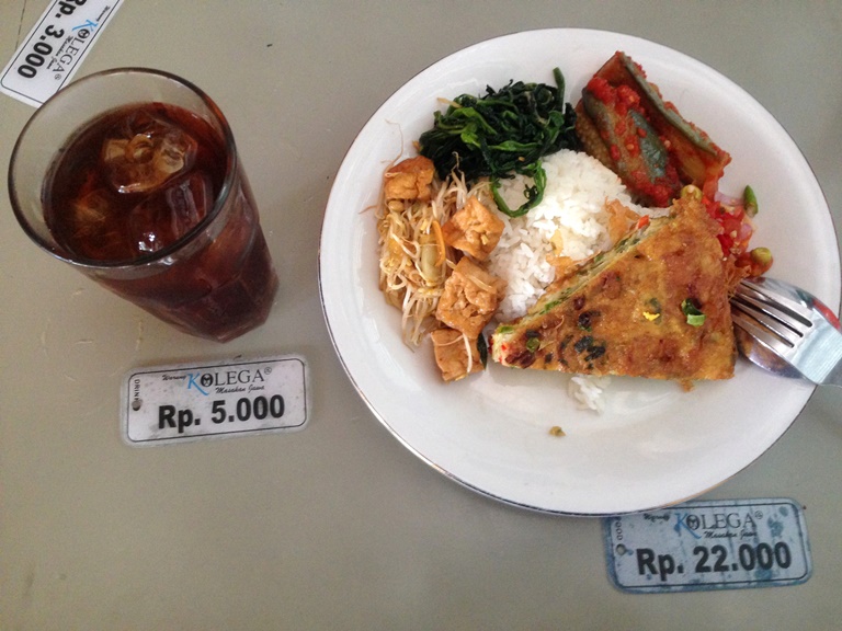 ランチは”ナシチャンプル”というインドネシア人が多いのでナシチャンプル屋は大小数多くの店がありますが…衛生的に観光客の方が引いてしまうローカル向けの店が多いのも事実…(汗)しかし ワルンコレガ(Warung Kolega)は、店内も清潔でオシャレ!お勧めのお店ですよ~♪