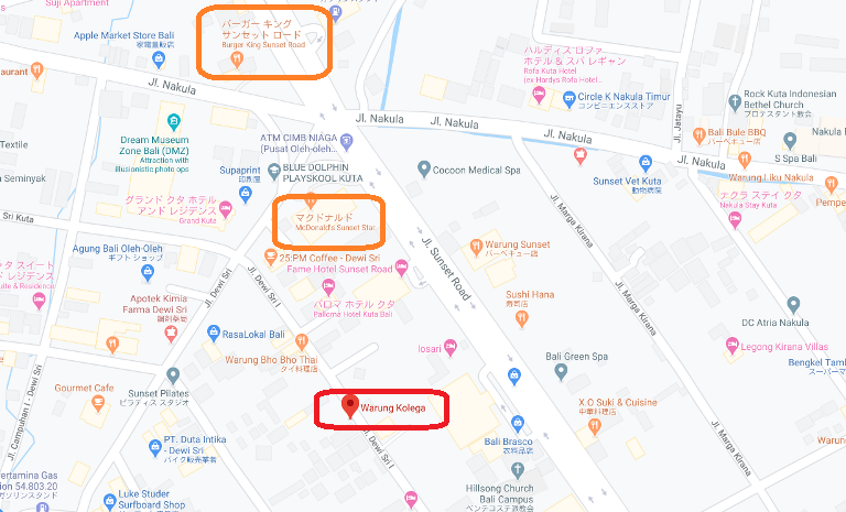以前はプティトゥンゲットにあったインドネシア人にはもちろん、観光客から在住外国人にも超人気店ですが今は、サンセットロードに近いデウィスリ通り(Jl. Dewi Sri)に移転してまーす。
