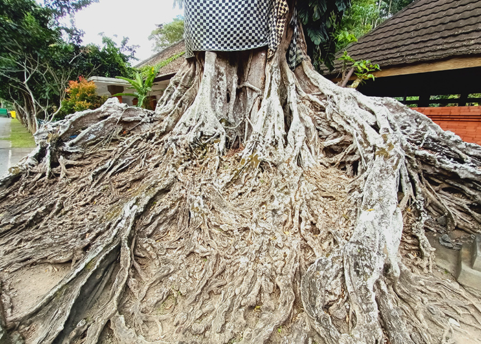 更衣室の近くにある神木の根っこはまるで化石みたいですごい迫力!