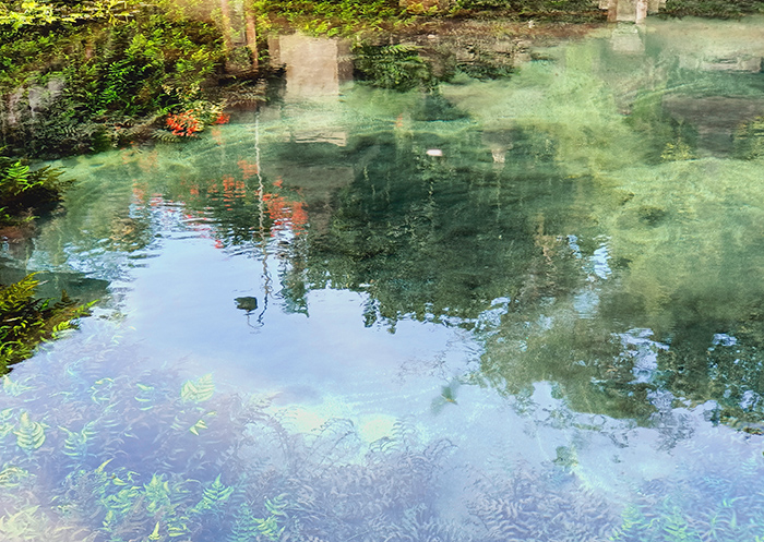 目をこらすと泉底の砂が湧き水が吹き出ているため舞い上がっているのを見ることができます。