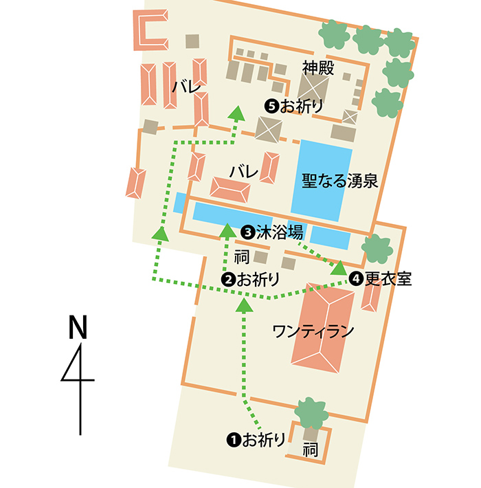 沐浴場の前にある祠では沐浴前にまずお祈り(見取り図❷)。