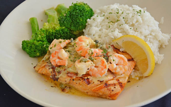 ↓最後はサーモン! シュリンプ&サーモンピカッタRp.295,000。エビとサーモンのコンビネーションなんてかなり贅沢な一皿。さっぱりとしたレモンケッパーソースが食欲を更にそそります!