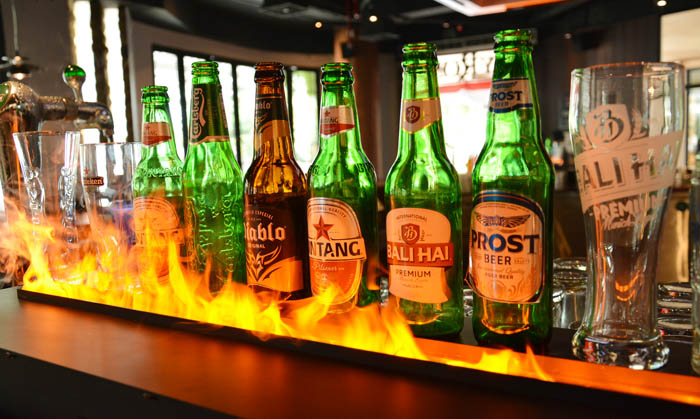 ↓ビールが燃えてる!って本物の火ではないのでご安心を(笑)。さすがリブやステーキがシグニチャーなだけあって、こんな火もどきの演出も似合いますね!