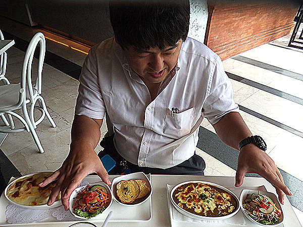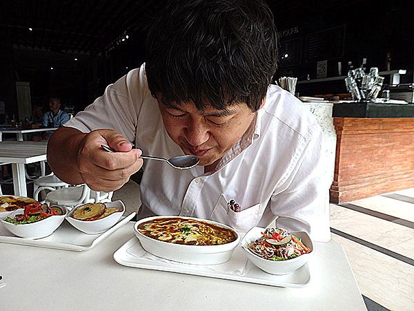 仕方ありません。。グッチがバリで一番好きだという焼カレーを食べるところを収めることにしました。