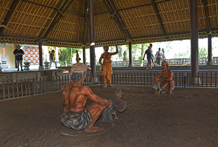 タマンアユンを入ってすぐの右側には闘鶏場があります。今は闘鶏などの賭博は禁じられていますので、闘鶏場には闘鶏の様子がわかるようマネキンが置かれていました。