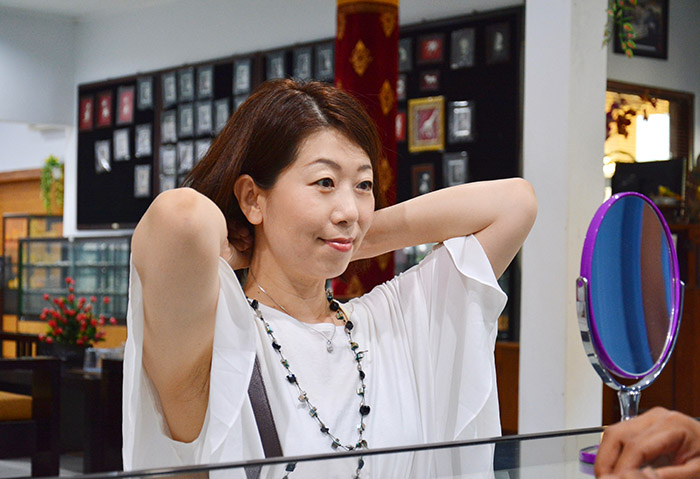 テガラランに向かう前にお土産やさんに寄ります。お土産やさんはシルバー、雑貨、木彫りなどから一つをチョイスします。Mさんたちはシルバーショップをチョイス!シルバーショップのKJ(クルタジャヤ)がウブド市街地から一番近いらしいです。