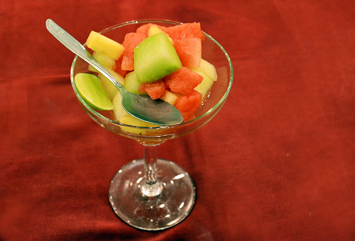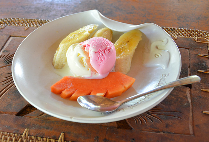↓デザートからバナナスピリット。よく見ると象のレリーフがお皿に?