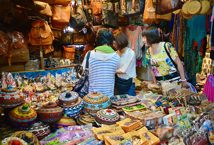 続いては道路を挟んでお隣のウブド市場へ。工芸品や土産物が所狭しと並んでいます。