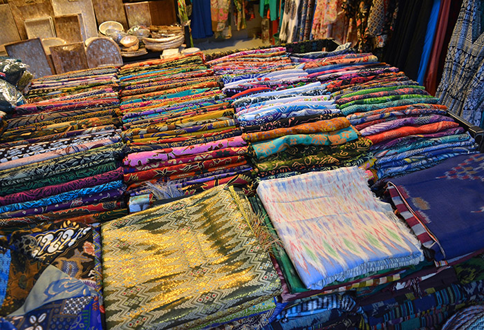 ↓インドネシア独特のバティックやイカットなどのテキスタイル。